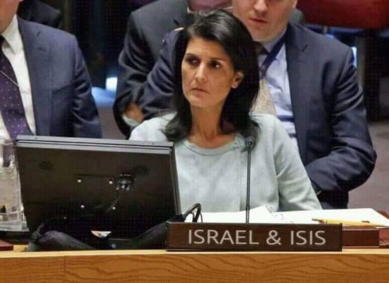 To be sure the lovefest for Israel in government extends far beyond FDD and AIPAC. It can be found in many dark corners. National Security Advisor John Bolton recently received the “Defender of Israel” award from the Zionist Organization of America. And one might suggest that the U.S. United Nations delegation, headed by Ambassador Nikki Haley, is directed by the Israeli government, particularly given events of last Friday whereby the U.S. voted against a motion condemning Israel’s continued illegal occupation of the Syrian Golan Heights, thereby recognizing for the first time Israel’s sovereignty over the area. Whether Haley was speaking for herself or for the administration was characteristically unclear, but it hardly matters. Nikki Haley might be referred to as a useful idiot, as Lenin put it, but her consistent pattern of extreme loyalty in defense of Israel marks her out as being particularly beholden to the Jewish state, which will no doubt arrange to richly reward her through some position in financial services for which she is totally unqualified when she leaves her post in January. And then she will be well funded to run for president in 2020. Having Haley in charge, one might just as well vote for Benjamin Netanyahu.