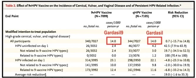 Instead, Merck relied on surrogate markers of pre-cancers, such as cervical intraepithelial neoplasia (CIN2/3) to claim effectiveness. This is a significantly lower evidentiary bar that was used to fast-track FDA approval.