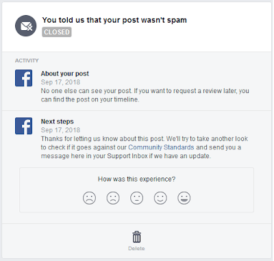 Appeals are not suspensive. Anyway, without any mention of a motive, corpus delicti and mere notification of removal of my page, not even in Facebook’s internal notifications on my personnal account, we are clearly beyond kafkaesque.
