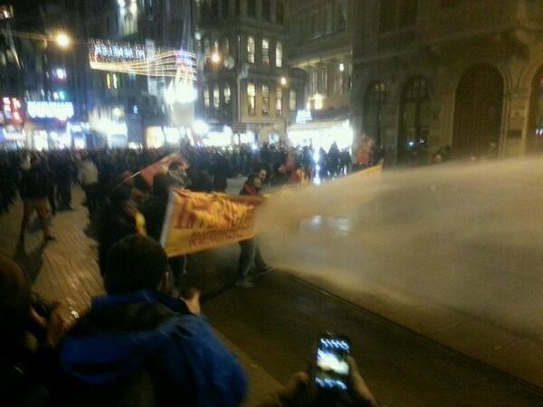 Police approached the crowd along Istanbul’s Istiklal Avenue and fired water cannons from behind armored vehicles as protesters tried to march to the city’s main square.