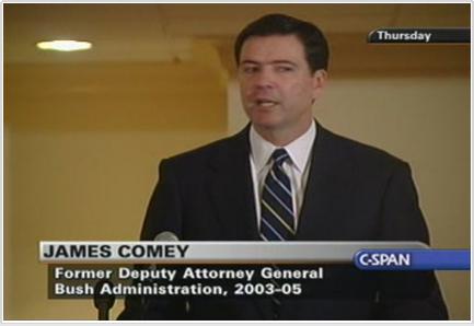 In fact, that independence is the focus of perhaps the most widely reported instance from the Bush White House involving Comey. While serving as deputy attorney general in the Department of Justice, Comey rejected the administration’s warrantless wiretapping program that has recently reemerged as the center of controversy.
