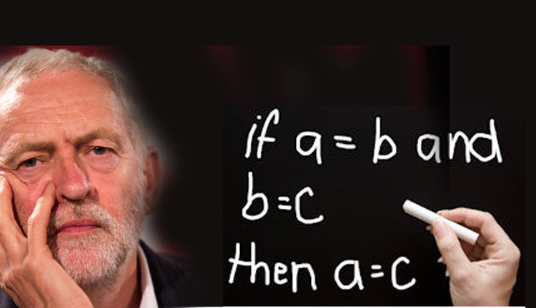 I mention the Transitive Axiom because it is a straightforward way to understand that if Corbyn (A) = existential threat to Jews (B) and Hitler (C) = existential threat to Jews (B) then Corbyn (A) = Hitler (C).