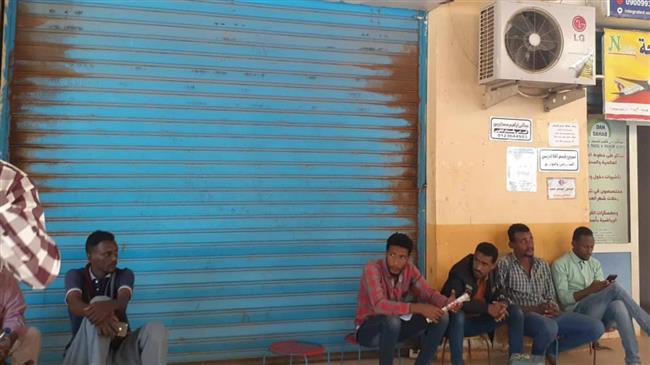 Job seekers wait outside the Amanda travel agency in order to get their money back in Khartoum. (Photo by MEE)