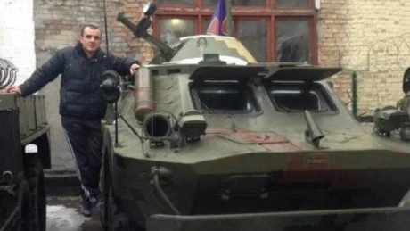 Nikolay Kochmarik posing with a Ukrainian armored vehicle. FSB