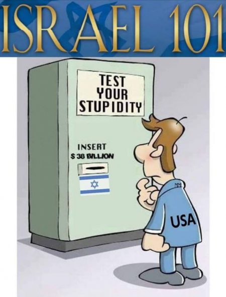 Part of the aid to Israel, $550 million, was included in the Pentagon Defense bill passed in August. The major part of the aid to Israel – $33 billion over the next 10 years – is still in process. It was passed by the Senate and then went to the House of Representatives, where Israel partisans added some provisions that made it even better for Israel, and passed it by voice vote on September 12th.