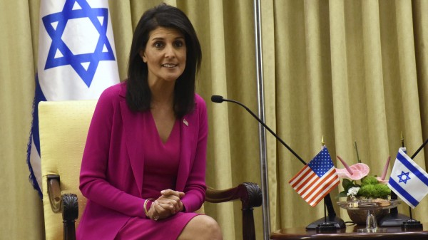 As governor of South Carolina, Haley first became identified as an unquestioning supporter of Israel. Immediately upon taking office at the United Nations she complained that “nowhere has the U.N.’s failure been more consistent and more outrageous than in its bias against our close ally Israel” and vowed that the “days of Israel bashing are over.” On a recent visit to Israel, she was applauded honored by Israeli Prime Minister Benjamin Netanyahu.