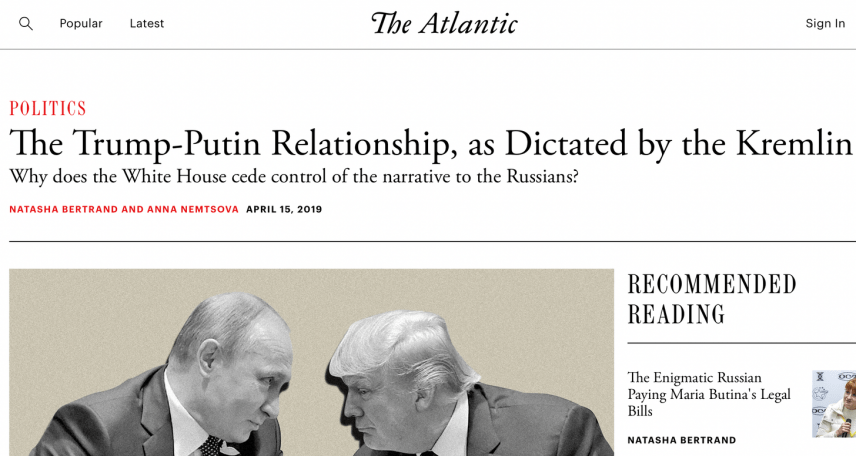 In 2018, it was Jeffrey Goldberg himself — knowing a star CIA propagandist when he sees one — who gave Bertrand her first big break by hiring her away from Business Insider to cover Russiagate for The Atlantic. Shortly after, she joined the Queen of Russiagate conspiracies herself by becoming a national security analyst for MSNBC and NBC News. From there, it was onto Politico and now CNN : the ideal, rapid career climb that is the dream of every liberal security state servant calling themselves a journalist. Her final conspiratorial article for The Atlantic before moving to Politico is the perfect illustration of who and what she is: