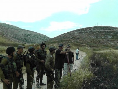 A familiar sight, soldiers and settlers working together (Photo by Qaryut villagers)
